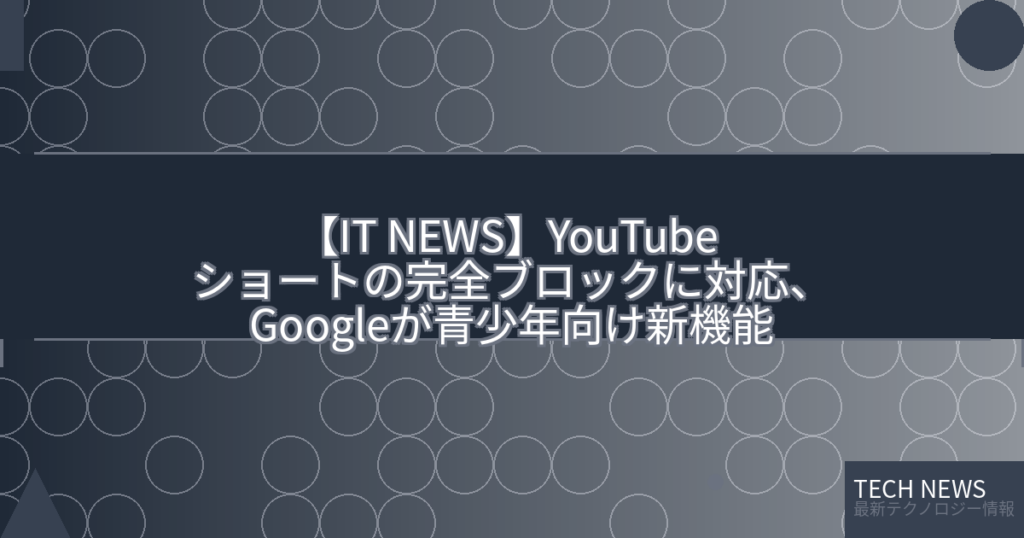 【IT NEWS】YouTube ショートの完全ブロックに対応、Googleが青少年向け新機能