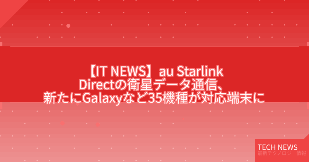【IT NEWS】au Starlink Directの衛星データ通信、新たにGalaxyなど35機種が対応端末に