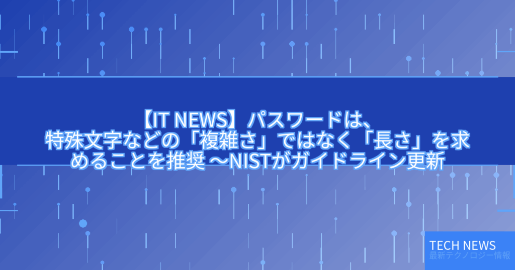 【IT NEWS】パスワードは、特殊文字などの「複雑さ」ではなく「長さ」を求めることを推奨 〜NISTがガイドライン更新やじうまWatch