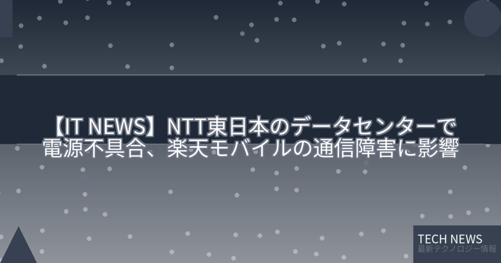 【IT NEWS】NTT東日本のデータセンターで電源不具合、楽天モバイルの通信障害に影響