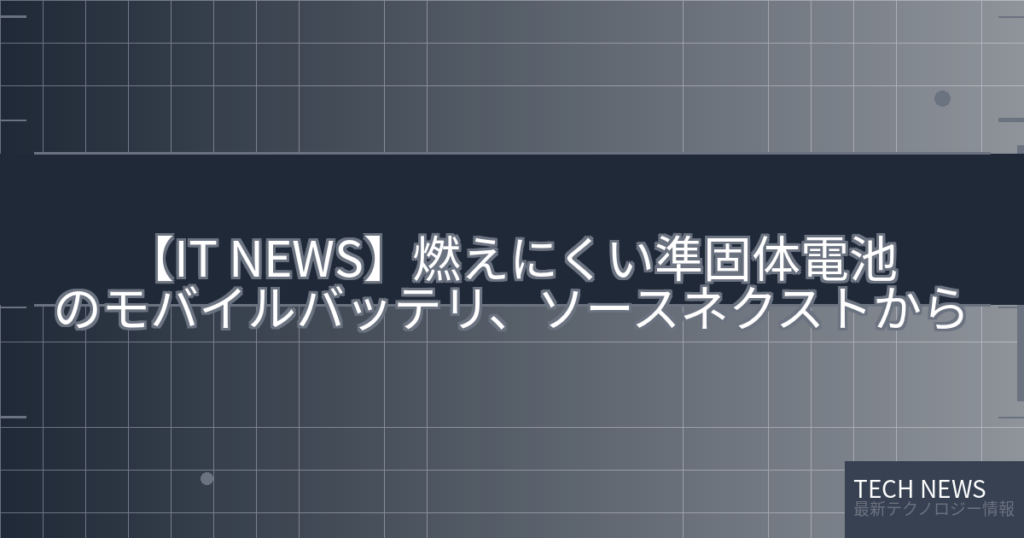 【IT NEWS】燃えにくい準固体電池のモバイルバッテリ、ソースネクストから