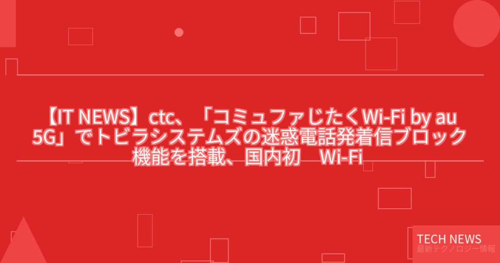 【IT NEWS】ctc、「コミュファじたくWi-Fi by au 5G」でトビラシステムズの迷惑電話発着信ブロック機能を搭載、国内初 Wi-Fi 7対応ホームルーターサービス、中部5県に提供