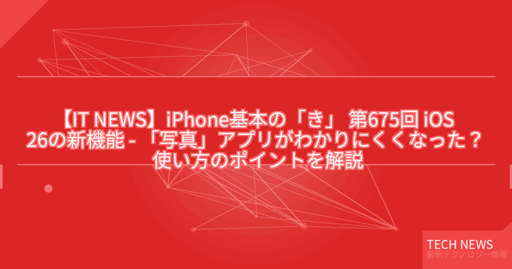 【IT NEWS】iPhone基本の「き」 第675回 iOS 26の新機能 – 「写真」アプリがわかりにくくなった? 使い方のポイントを解説
