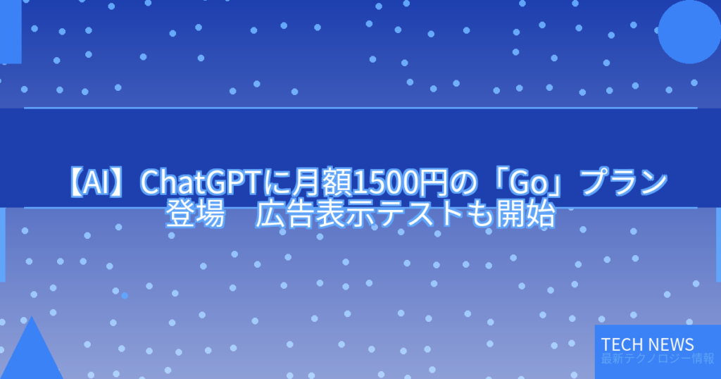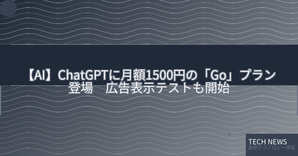 【AI】ChatGPTに月額1500円の「Go」プラン登場 広告表示テストも開始