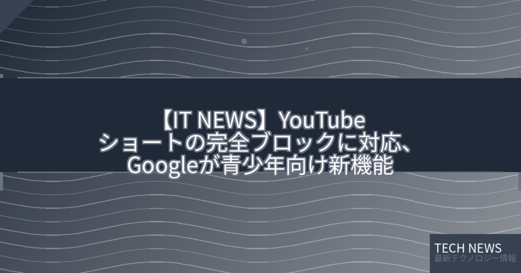 【IT NEWS】YouTube ショートの完全ブロックに対応、Googleが青少年向け新機能