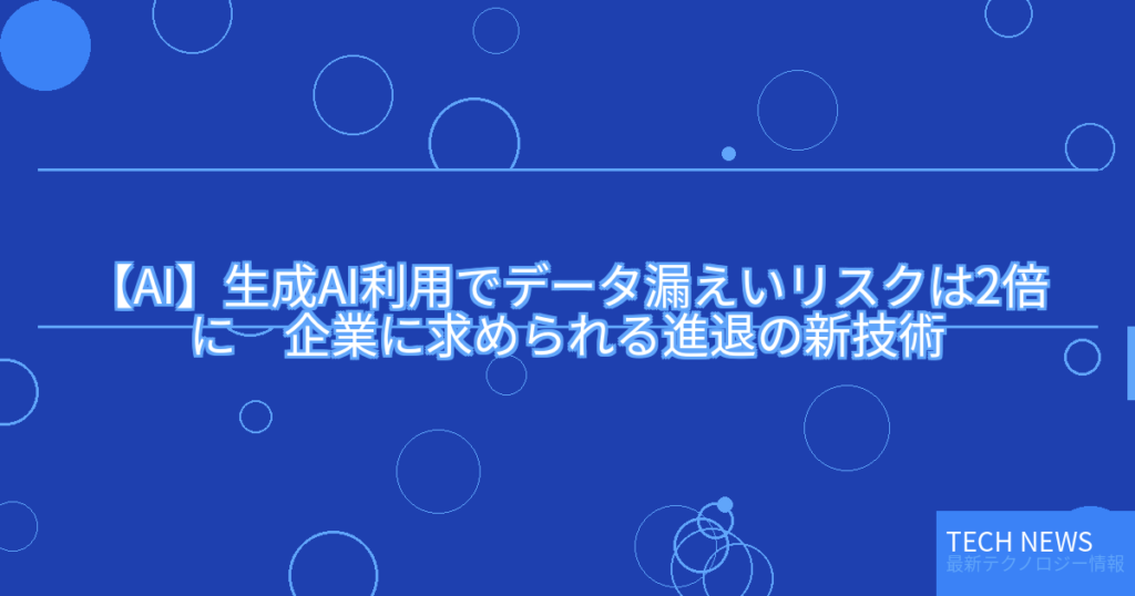 【AI】生成AI利用でデータ漏えいリスクは2倍に 企業に求められる進退の新技術