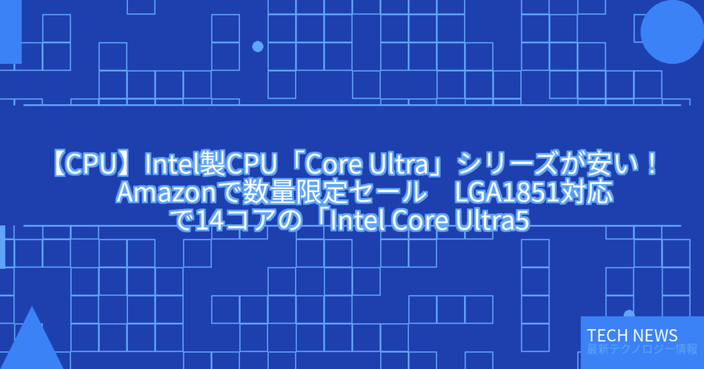 【CPU】Intel製CPU「Core Ultra」シリーズが安い! Amazonで数量限定セール LGA1851対応で14コアの「Intel Core Ultra5 245K」は3万4578円の性能向上