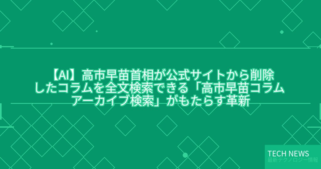 【AI】高市早苗首相が公式サイトから削除したコラムを全文検索できる「高市早苗コラム アーカイブ検索」がもたらす革新