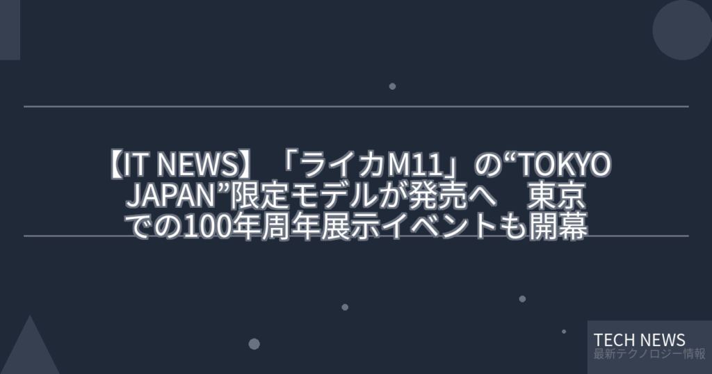 【IT NEWS】「ライカM11」の“TOKYO JAPAN”限定モデルが発売へ 東京での100年周年展示イベントも開幕