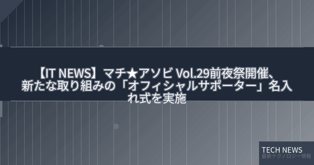 【IT NEWS】マチ★アソビ Vol.29前夜祭開催、新たな取り組みの「オフィシャルサポーター」名入れ式を実施
