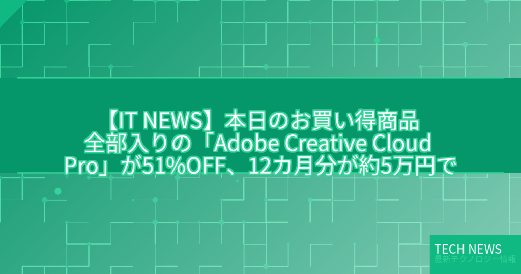 【IT NEWS】本日のお買い得商品 全部入りの「Adobe Creative Cloud Pro」が51%OFF、12カ月分が約5万円で