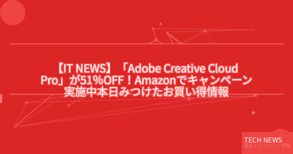 【IT NEWS】「Adobe Creative Cloud Pro」が51%OFF!Amazonでキャンペーン実施中本日みつけたお買い得情報