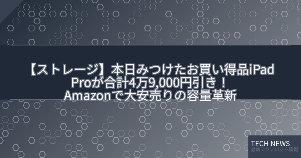 【ストレージ】本日みつけたお買い得品iPad Proが合計4万9,000円引き!Amazonで大安売りの容量革新
