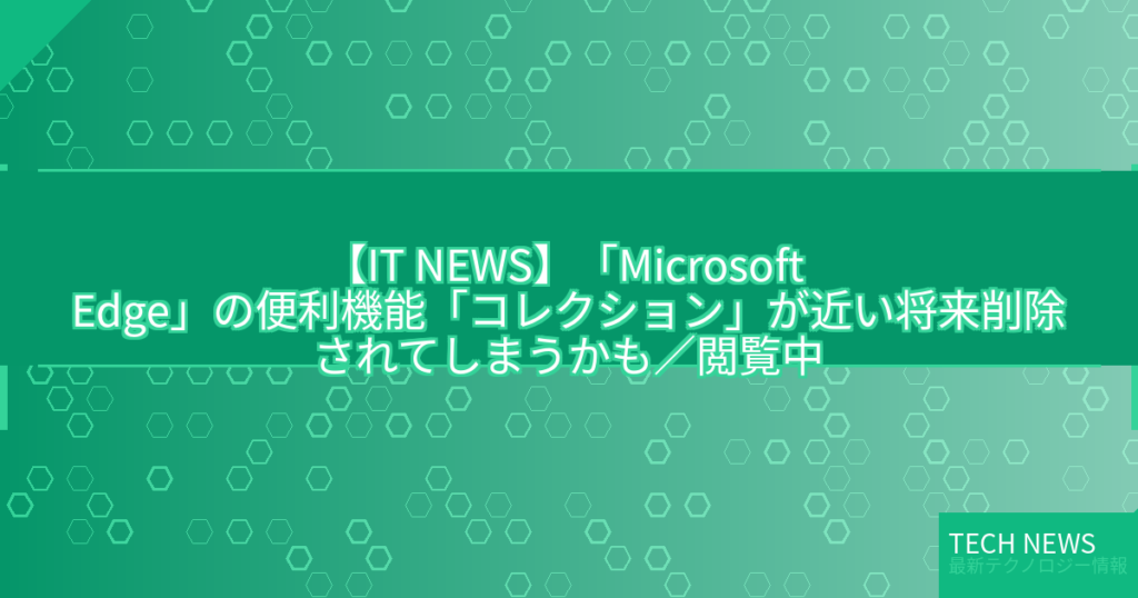【IT NEWS】「Microsoft Edge」の便利機能「コレクション」が近い将来削除されてしまうかも/閲覧中のコンテンツをスクラップ、他の「Edge」と共有できる機能やじうまの杜