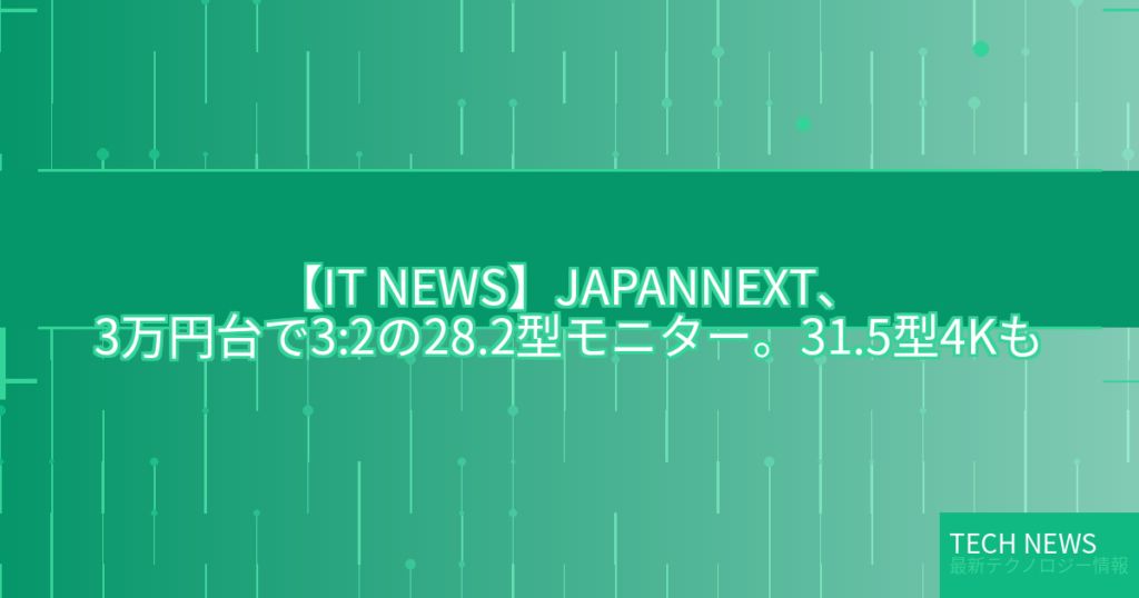 【IT NEWS】JAPANNEXT、3万円台で3:2の28.2型モニター。31.5型4Kも