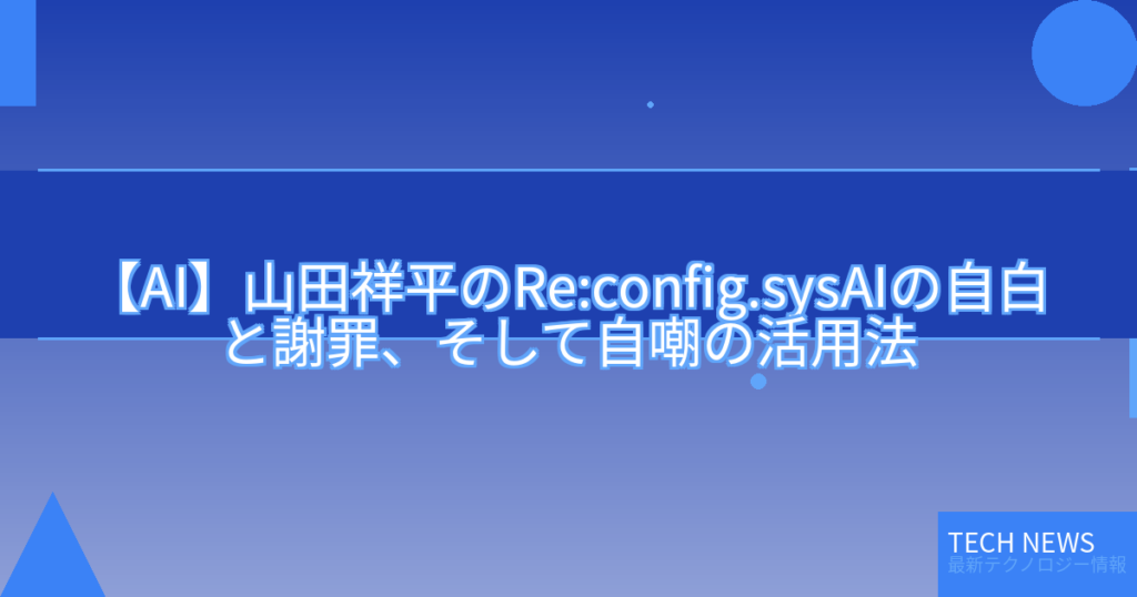 最新ニュースとその考察 📰 元記事の内容 記事タイトル:【山田祥平のRe:config.sys】AIの自白と謝罪、そして自嘲 記事概要: 情報源: 元記事を読む → 以下に、「【山田祥平のRe:config.sys】AIの自白と謝罪、そして自嘲」についての専門的で詳細... -