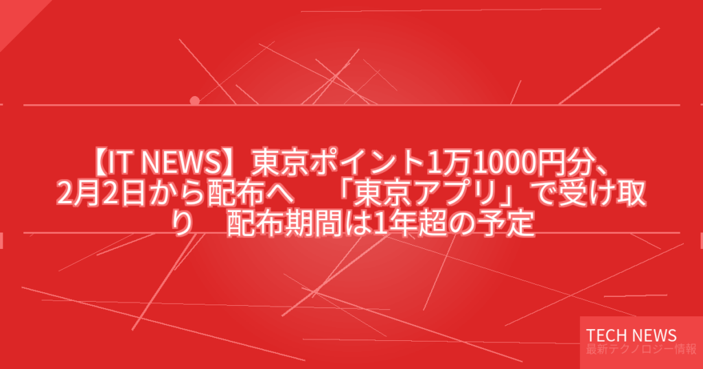 【IT NEWS】東京ポイント1万1000円分、2月2日から配布へ 「東京アプリ」で受け取り 配布期間は1年超の予定