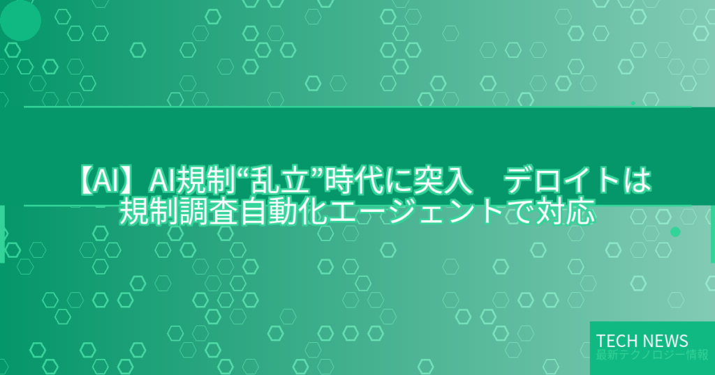 【AI】AI規制“乱立”時代に突入 デロイトは規制調査自動化エージェントで対応