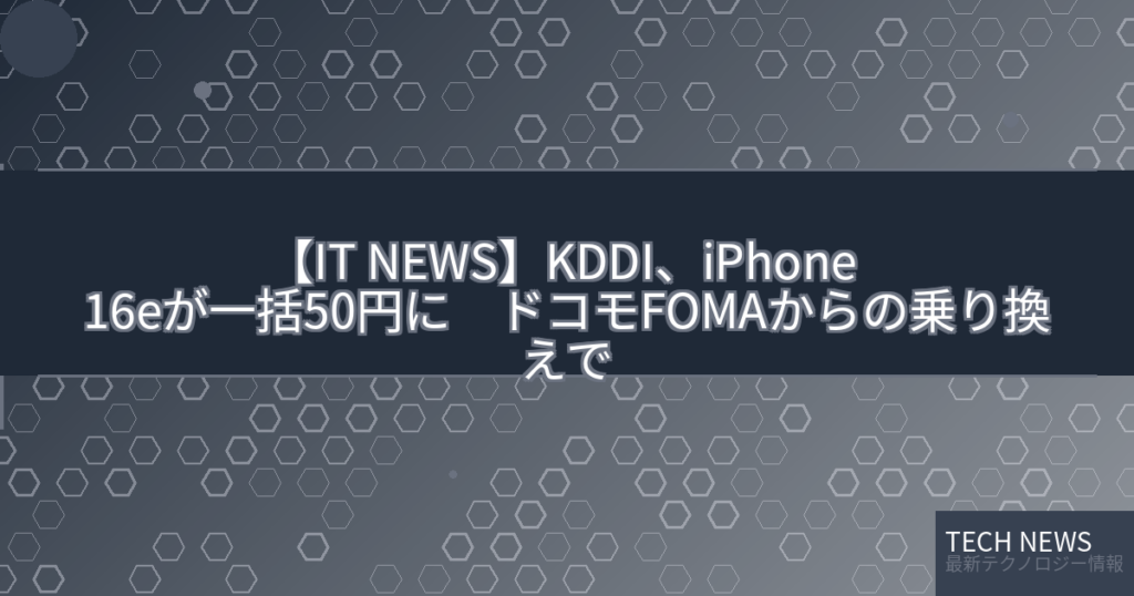 【IT NEWS】KDDI、iPhone 16eが一括50円に ドコモFOMAからの乗り換えで