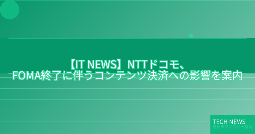 【IT NEWS】NTTドコモ、FOMA終了に伴うコンテンツ決済への影響を案内