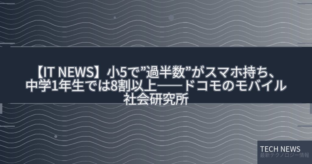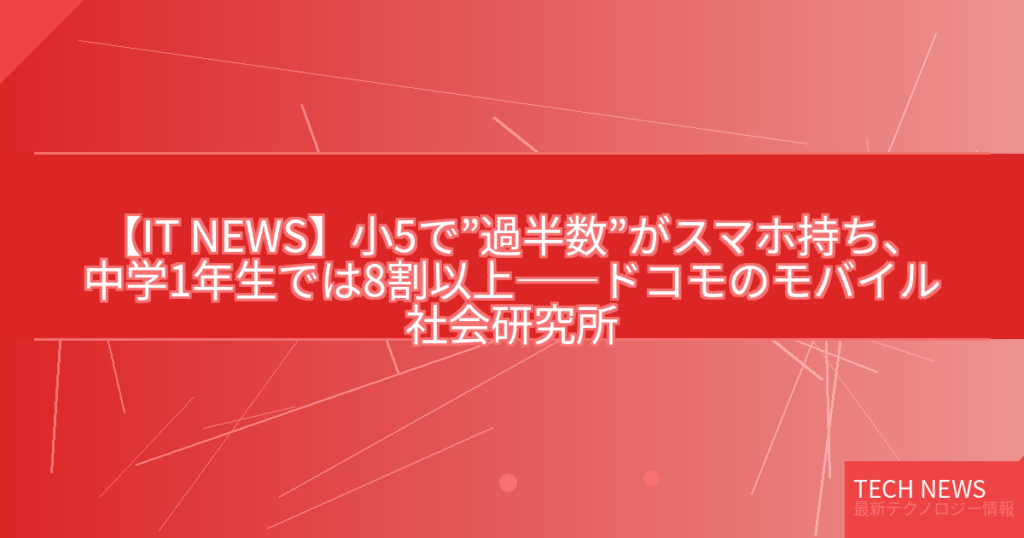 【IT NEWS】小5で”過半数”がスマホ持ち、中学1年生では8割以上――ドコモのモバイル社会研究所