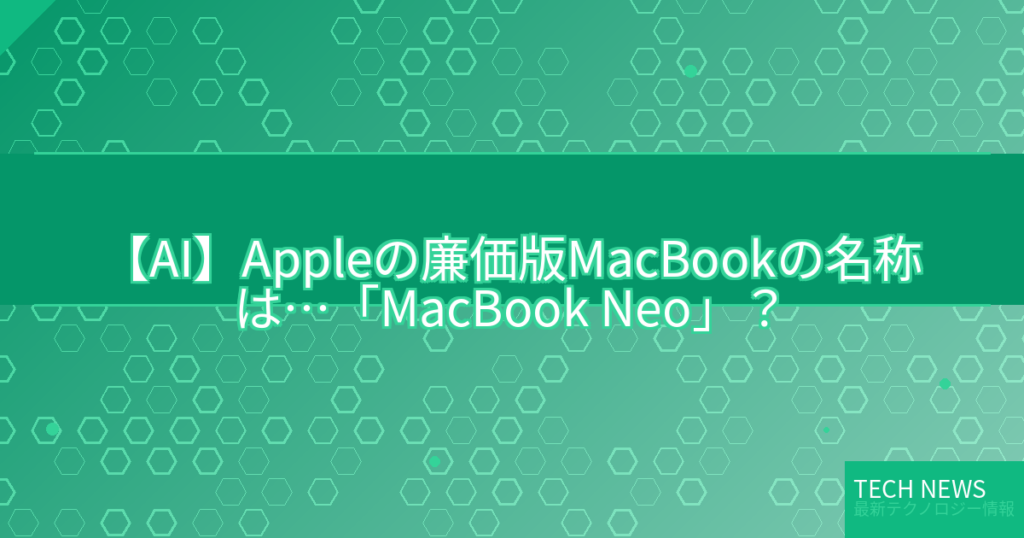 【AI】Appleの廉価版MacBookの名称は…「MacBook Neo」?
