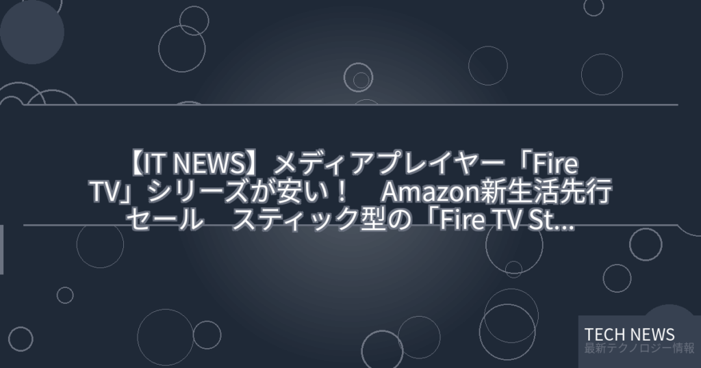 【IT NEWS】メディアプレイヤー「Fire TV」シリーズが安い! Amazon新生活先行セール スティック型の「Fire TV Stick 4K Max」が7980円など