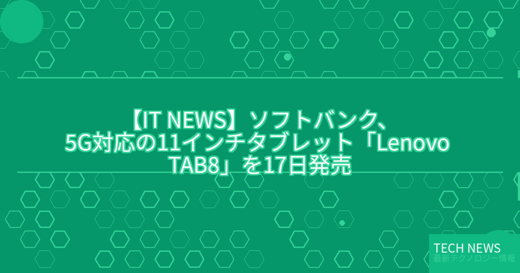【IT NEWS】ソフトバンク、5G対応の11インチタブレット「Lenovo TAB8」を17日発売