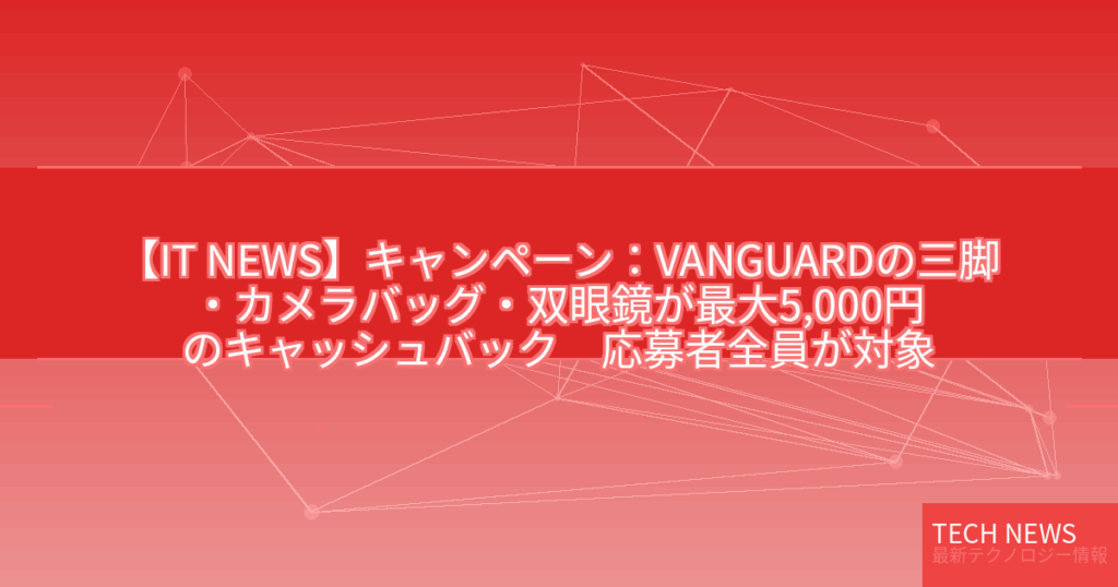 【IT NEWS】キャンペーン:VANGUARDの三脚・カメラバッグ・双眼鏡が最大5,000円のキャッシュバック 応募者全員が対象