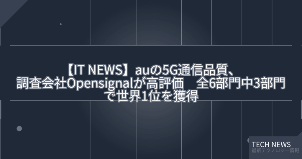 【IT NEWS】auの5G通信品質、調査会社Opensignalが高評価 全6部門中3部門で世界1位を獲得