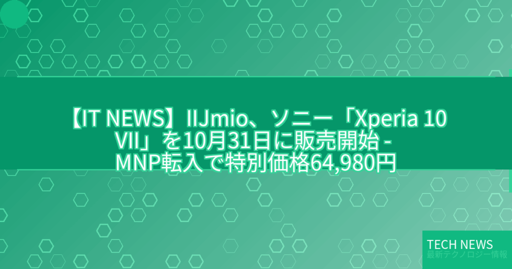 【IT NEWS】IIJmio、ソニー「Xperia 10 VII」を10月31日に販売開始 – MNP転入で特別価格64,980円