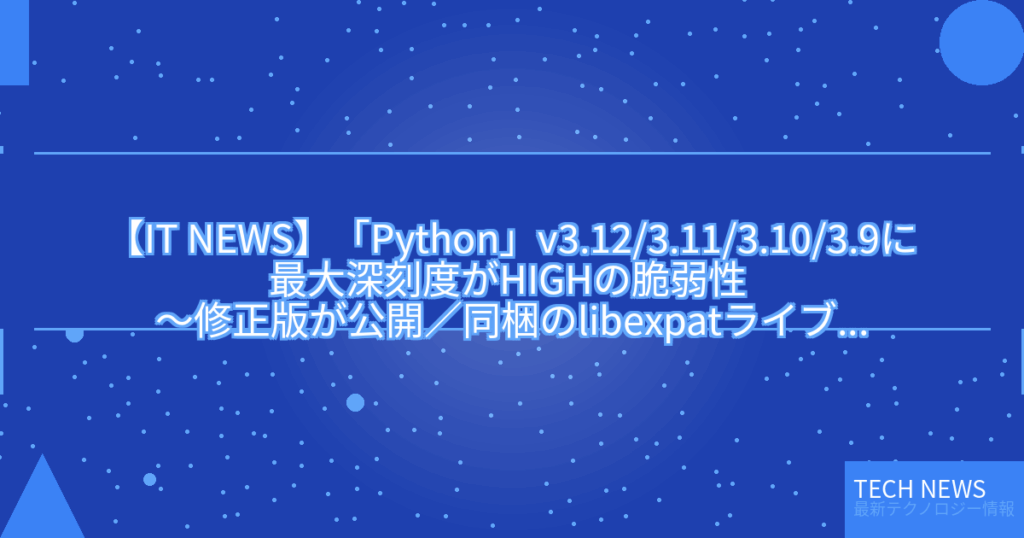 【IT NEWS】「Python」v3.12/3.11/3.10/3.9に最大深刻度がHIGHの脆弱性 ~修正版が公開/同梱のlibexpatライブラリに存在する制限ないリソース割り当てなど