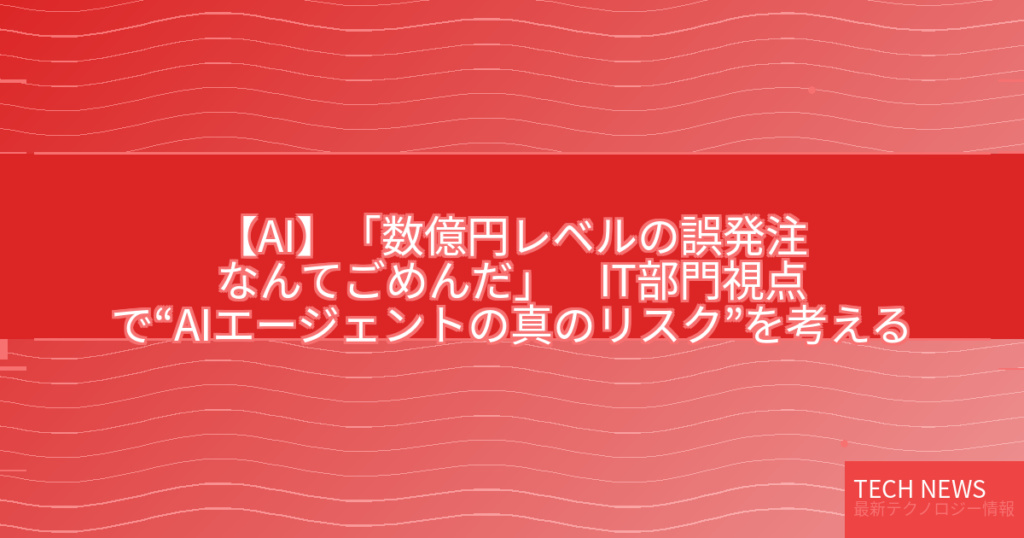 【AI】「数億円レベルの誤発注なんてごめんだ」 IT部門視点で“AIエージェントの真のリスク”を考える