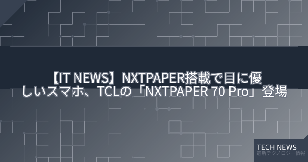 【IT NEWS】NXTPAPER搭載で目に優しいスマホ、TCLの「NXTPAPER 70 Pro」登場
