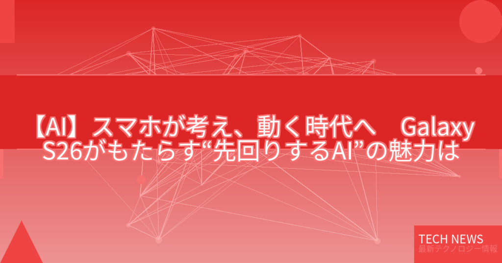 【AI】スマホが考え、動く時代へ Galaxy S26がもたらす“先回りするAI”の魅力は