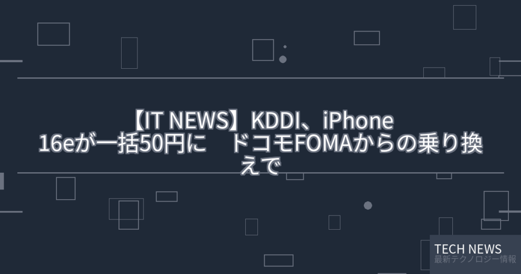 【IT NEWS】KDDI、iPhone 16eが一括50円に ドコモFOMAからの乗り換えで