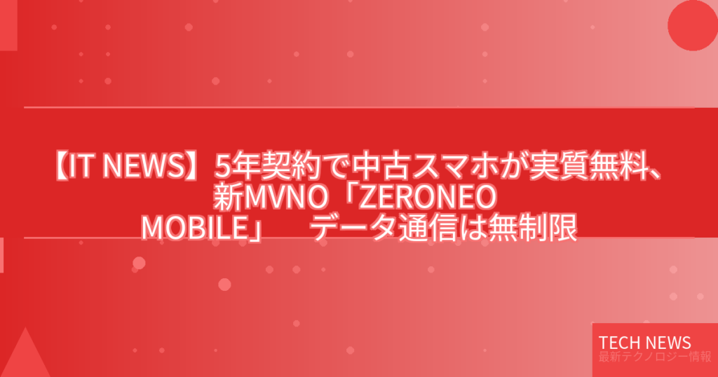 【IT NEWS】5年契約で中古スマホが実質無料、新MVNO「ZERONEO MOBILE」 データ通信は無制限