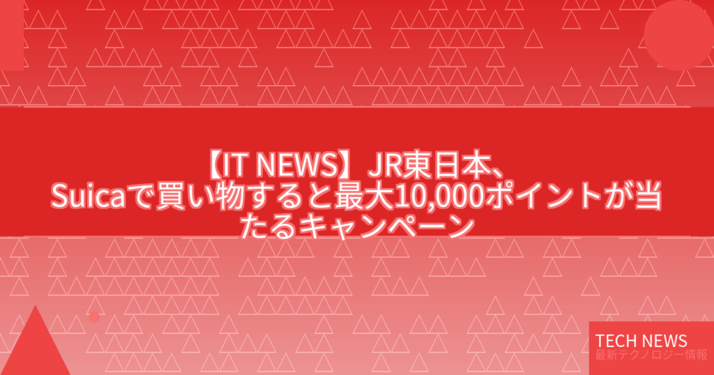 【IT NEWS】JR東日本、Suicaで買い物すると最大10,000ポイントが当たるキャンペーン