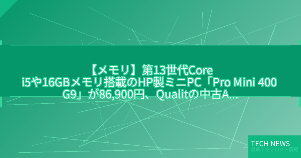 【メモリ】第13世代Core i5や16GBメモリ搭載のHP製ミニPC「Pro Mini 400 G9」が86,900円、Qualitの中古Aランク品セール