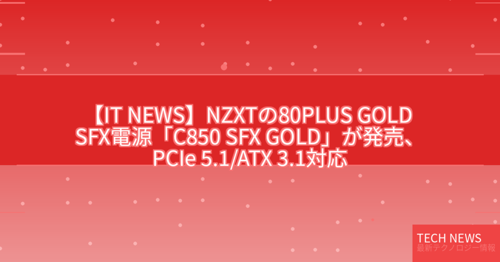【IT NEWS】NZXTの80PLUS GOLD SFX電源「C850 SFX GOLD」が発売、PCIe 5.1/ATX 3.1対応