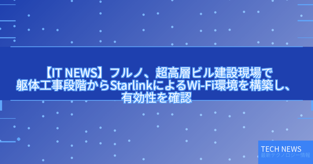 【IT NEWS】フルノ、超高層ビル建設現場で躯体工事段階からStarlinkによるWi-Fi環境を構築し、有効性を確認
