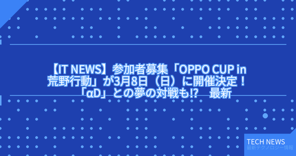 【IT NEWS】参加者募集「OPPO CUP in 荒野行動」が3月8日(日)に開催決定! 「αD」との夢の対戦も!? 最新ハイエンドスマホ「OPPO Find X9」ゲットチャンス!