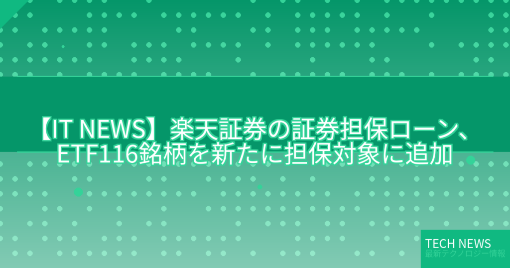 【IT NEWS】楽天証券の証券担保ローン、ETF116銘柄を新たに担保対象に追加