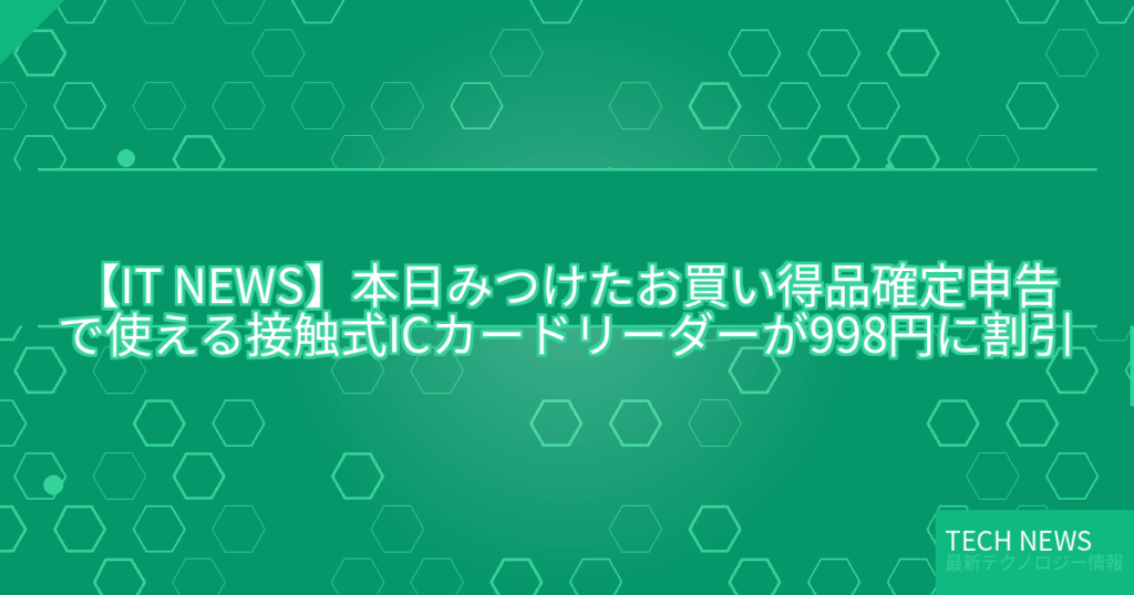 【IT NEWS】本日みつけたお買い得品確定申告で使える接触式ICカードリーダーが998円に割引
