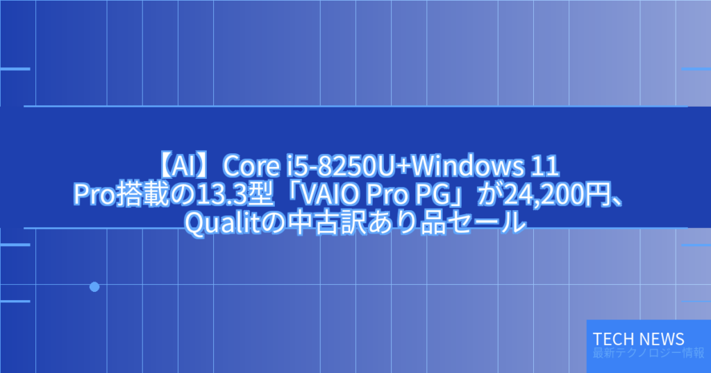 【AI】Core i5-8250U+Windows 11 Pro搭載の13.3型「VAIO Pro PG」が24,200円、Qualitの中古訳あり品セール