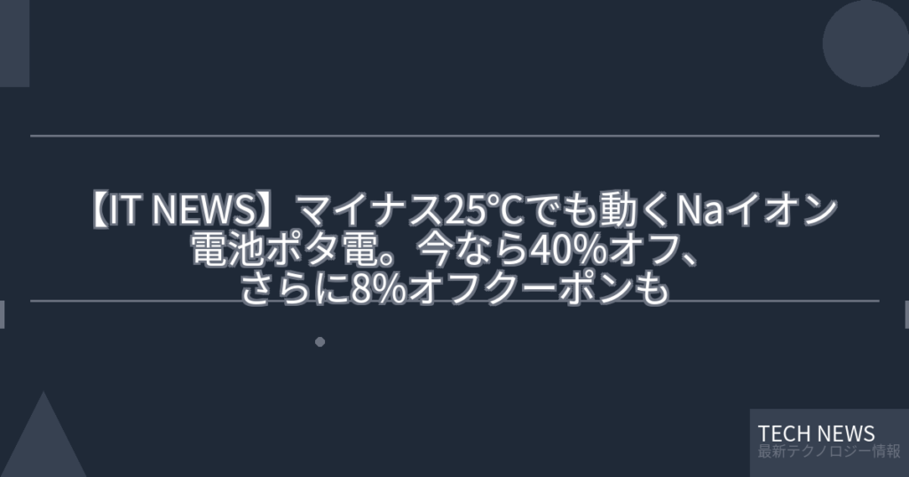 【IT NEWS】マイナス25℃でも動くNaイオン電池ポタ電。今なら40%オフ、さらに8%オフクーポンも