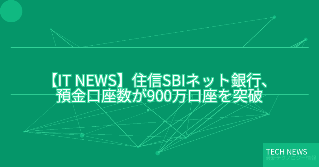 【IT NEWS】住信SBIネット銀行、預金口座数が900万口座を突破