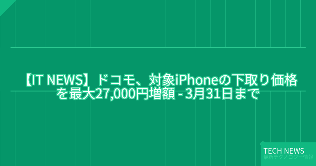 【IT NEWS】ドコモ、対象iPhoneの下取り価格を最大27,000円増額 – 3月31日まで