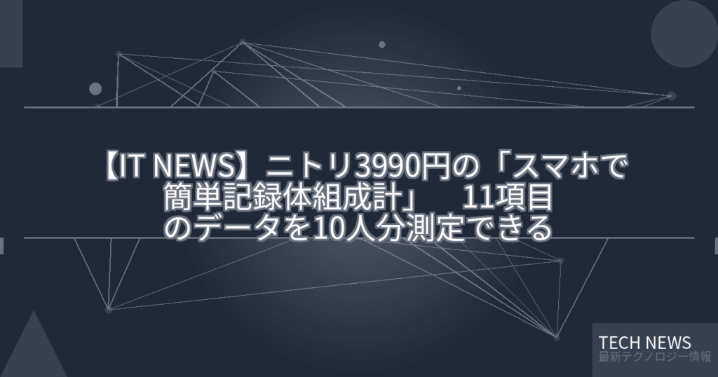 【IT NEWS】ニトリ3990円の「スマホで簡単記録体組成計」 11項目のデータを10人分測定できる