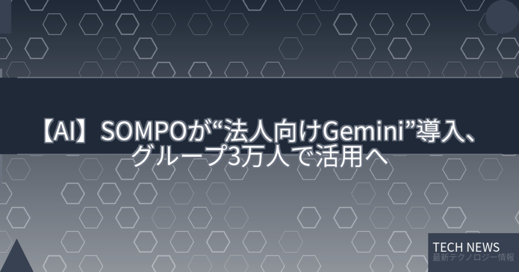 【AI】SOMPOが“法人向けGemini”導入、グループ3万人で活用へ